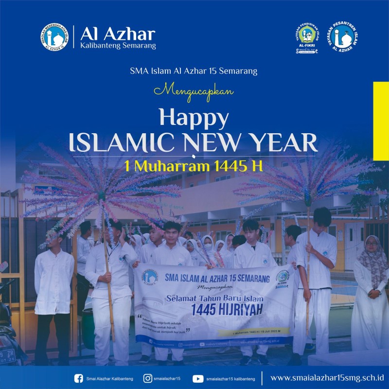 Murid-murid SMA Islam Al Azhar 15 Semarang melakukan pawai peringatan 1 Muharram 1445 H sebagai bentuk semangat untuk menebar kebaikan. Antusiasme murid-murid diharapkan dapat menebar energi positif disekitar lingkungan sekolah tempat dimana kegiatan pawai dilakukan. Kegiatan pawai juga dilakukan bersamaan dengan murid-murid SMP Islam Al Azhar 23 Semarang yang semakin menambah kemeriahan acara. Babinsa dan Babinkamtibmas Semarang Barat juga ikut mengamankan jalannya kegiatan pawai tersebut. Semoga pawai yang dilakukan dapat semakin menebar semangat untuk melakukan kebaikan disekitar lingkungan sekolah